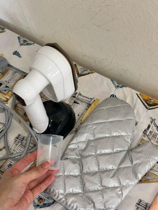 Комплектация: Инструкция на русском языке; Силиконовая накладка на подошву; мерный стакан; отпариватель